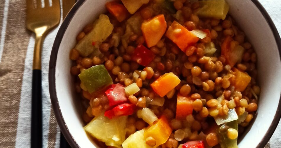 - añade la piña y su jugo y también las lentejas, deja cocinar otros minutos más.
